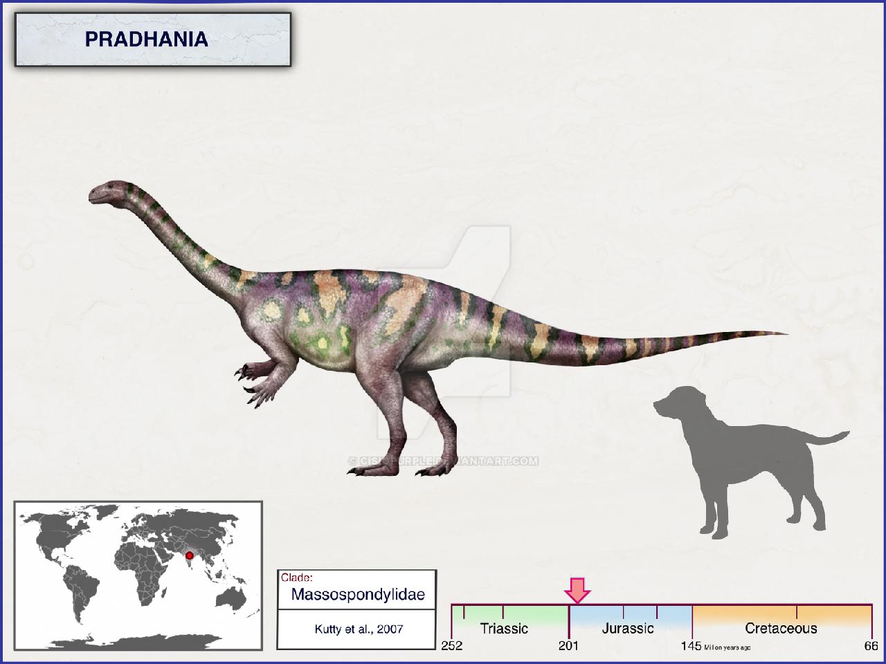 Pradhania was a omnivore. It lived in the Early Jurassic period and inhabited India. Its fossils have been found in places such as Telangana (india).
